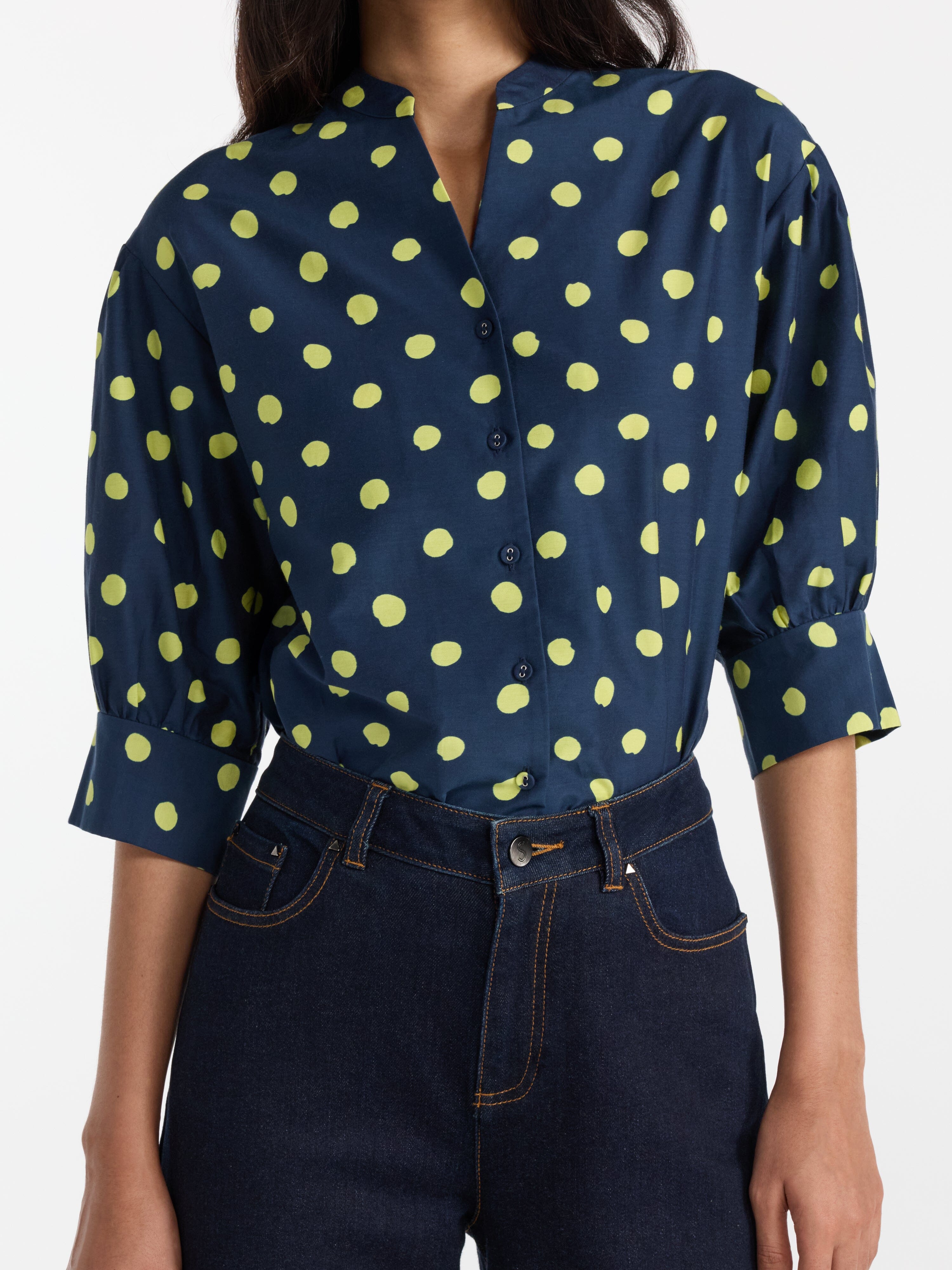 The Tavi Shirt is a beautifully tailored piece with a relaxed, feminine shape. Its softly puffed three-quarter sleeves and pleated back create gentle volume, balanced...
