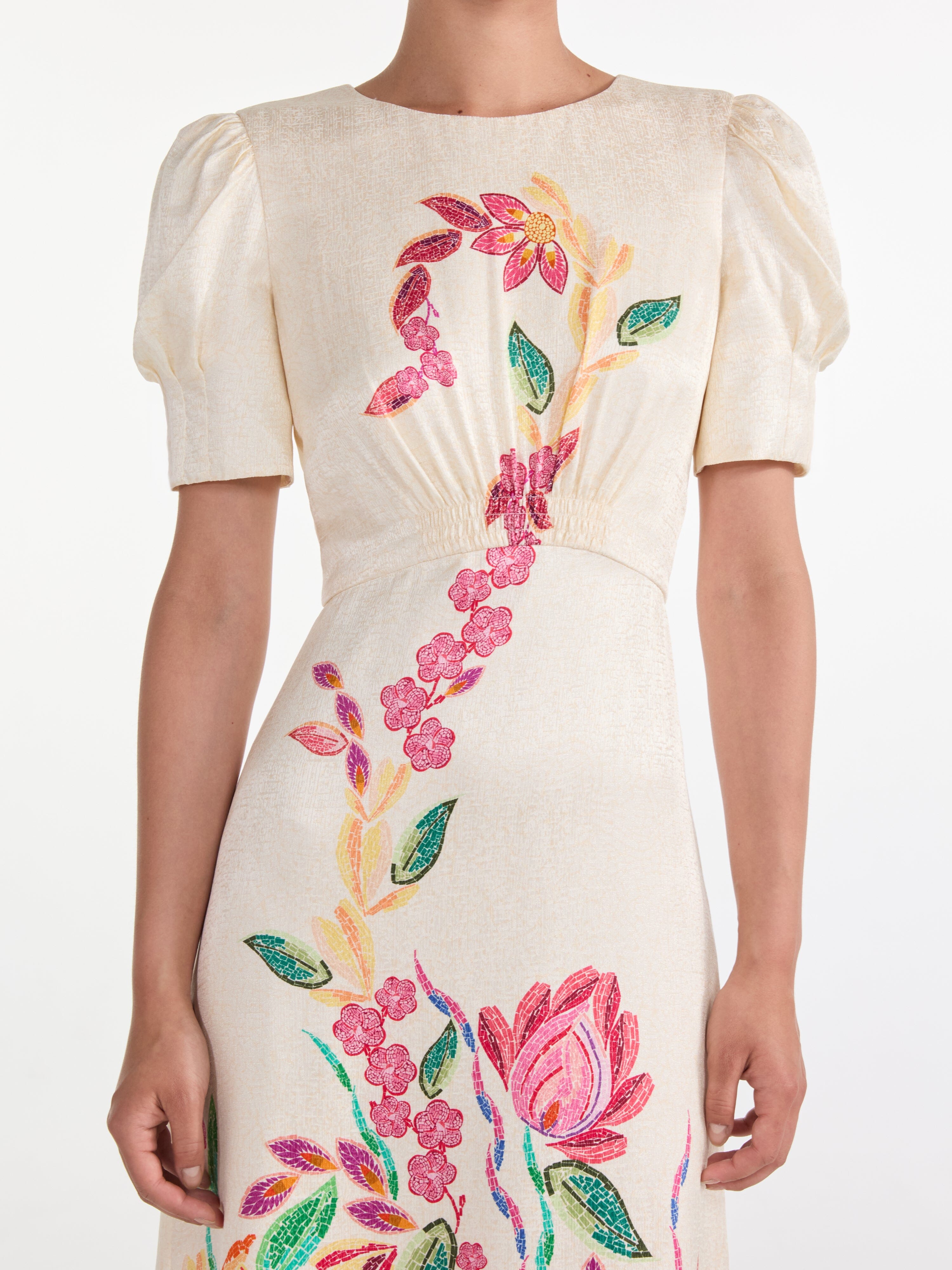 The Bianca Dress, a beloved SALONI signature SHAPE, returns in a striking new version—reimagined in the exquisite Mosaic Flourish print. This ankle-length silhouette embodies effortless...