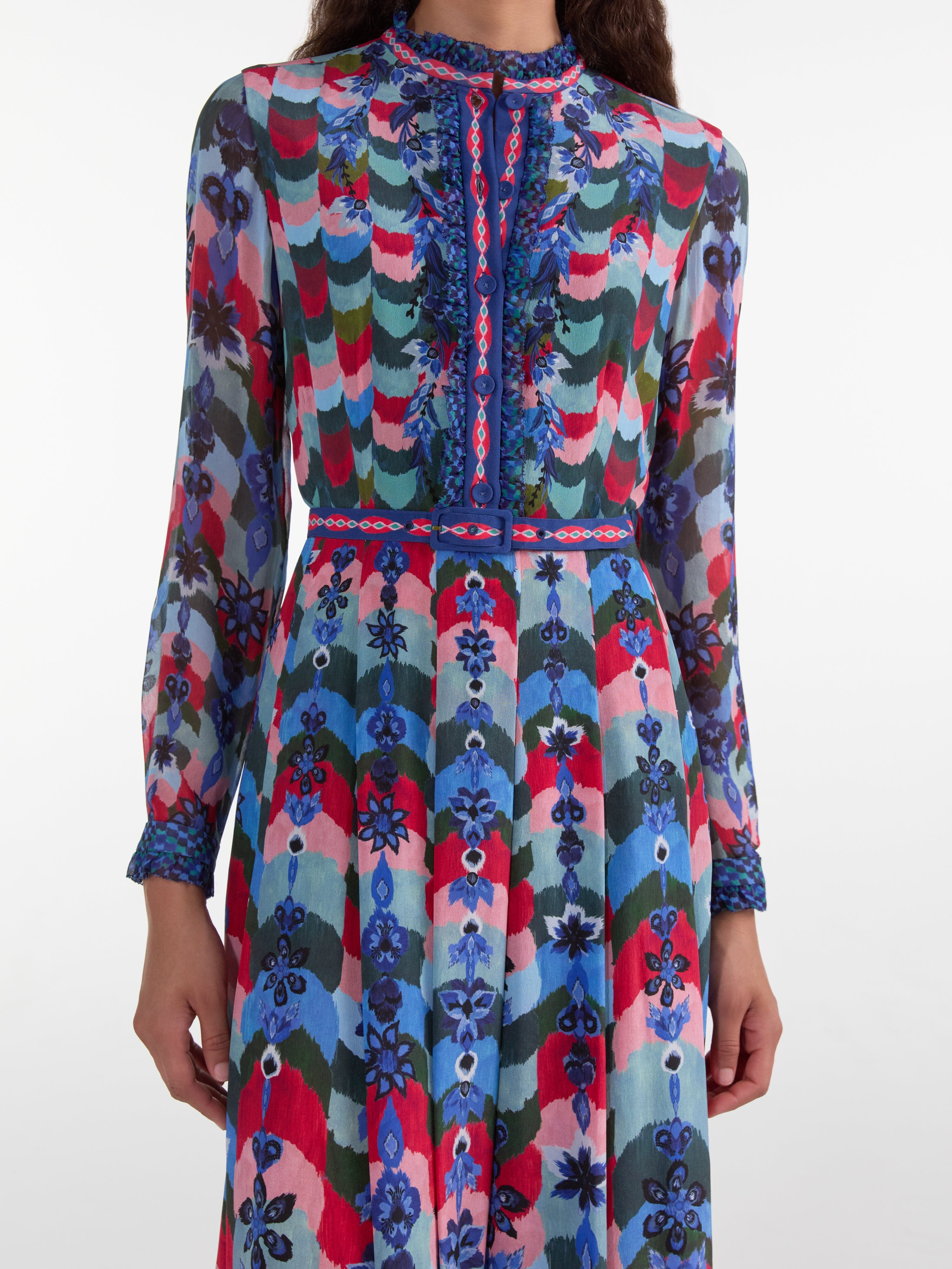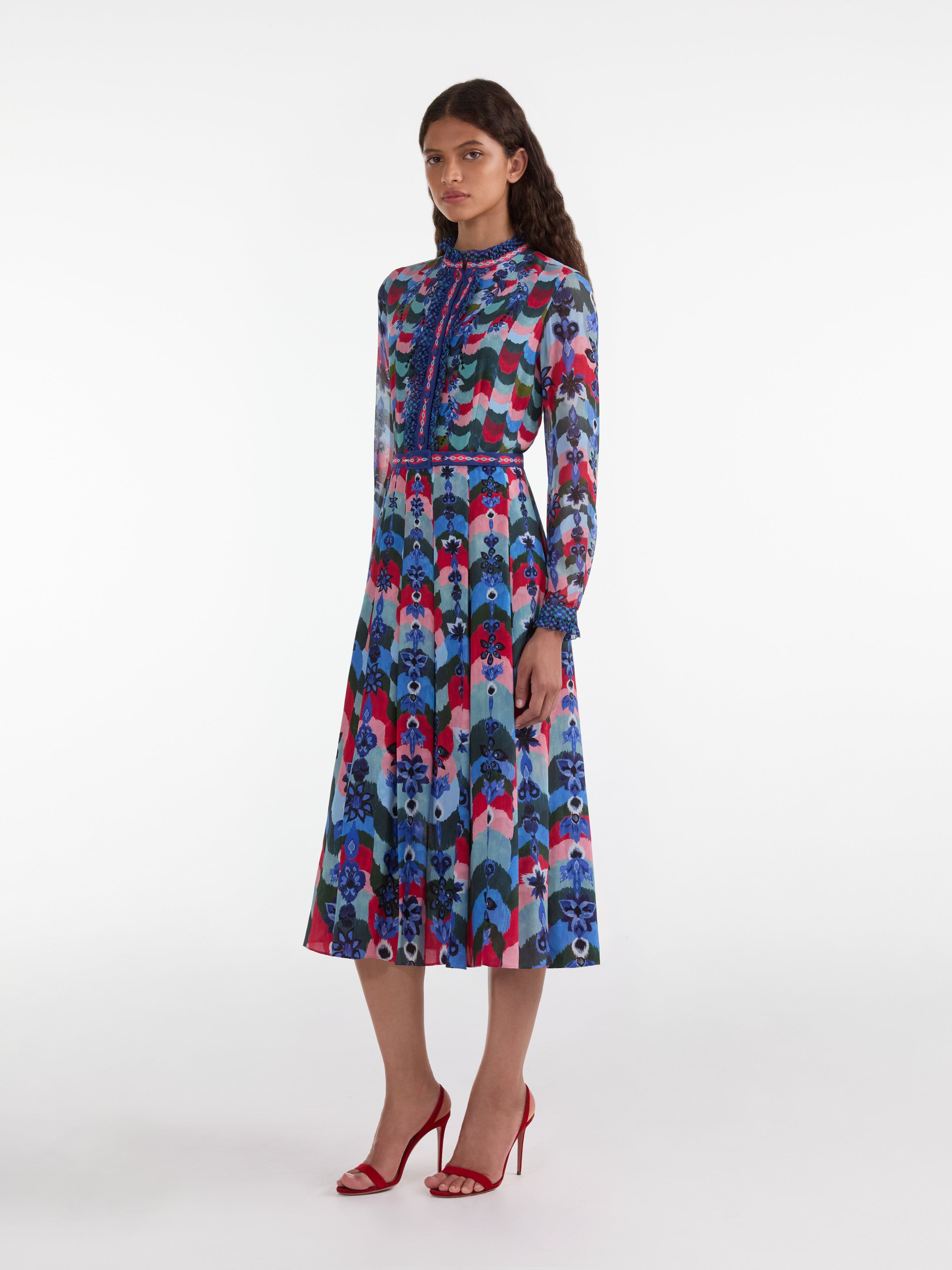 The Emilia Dress is a new SALONI SHAPE that balances structured tailoring with soft, romantic touches. A refined shirt-style bodice is elevated by delicate ruffle...