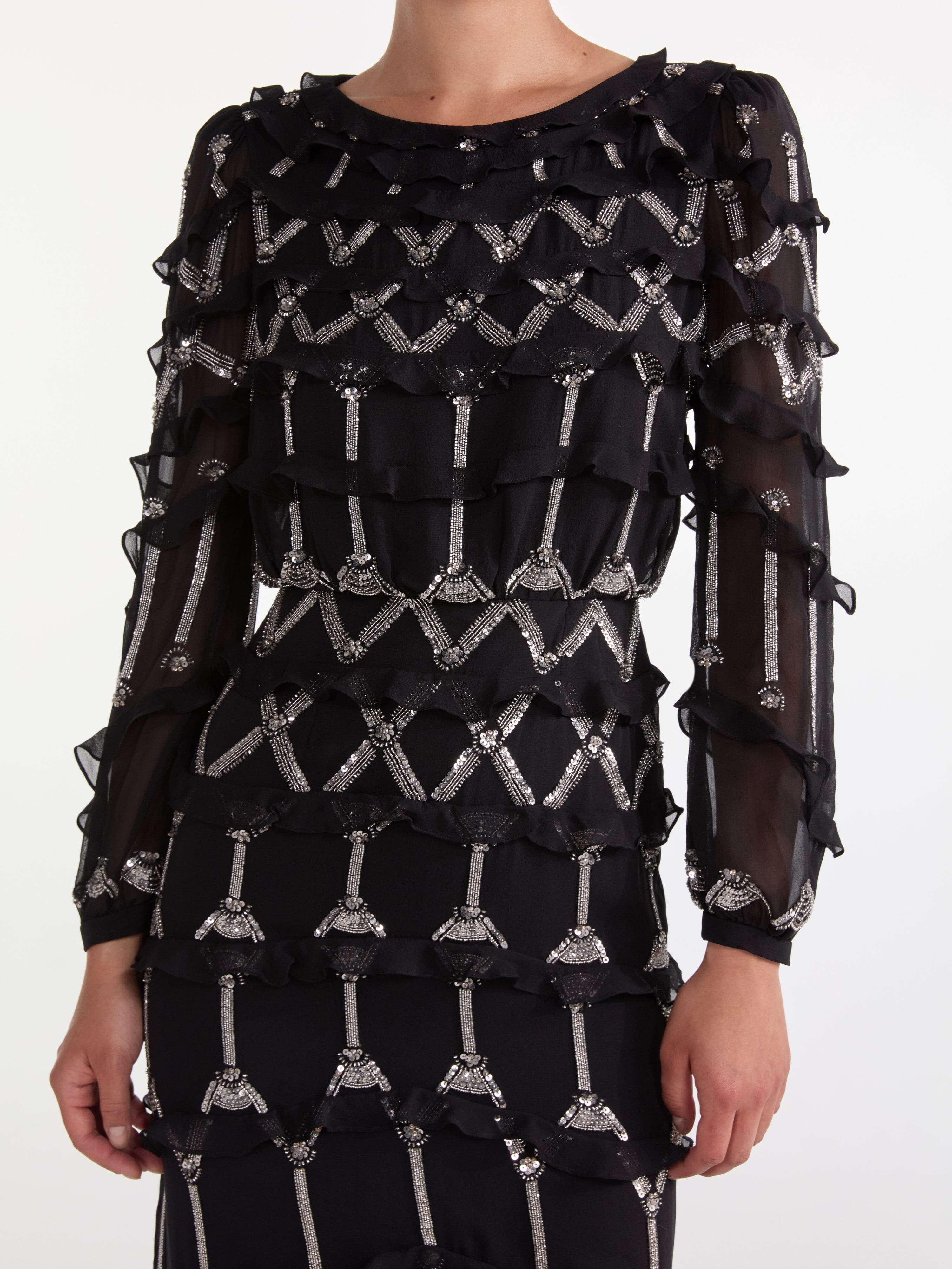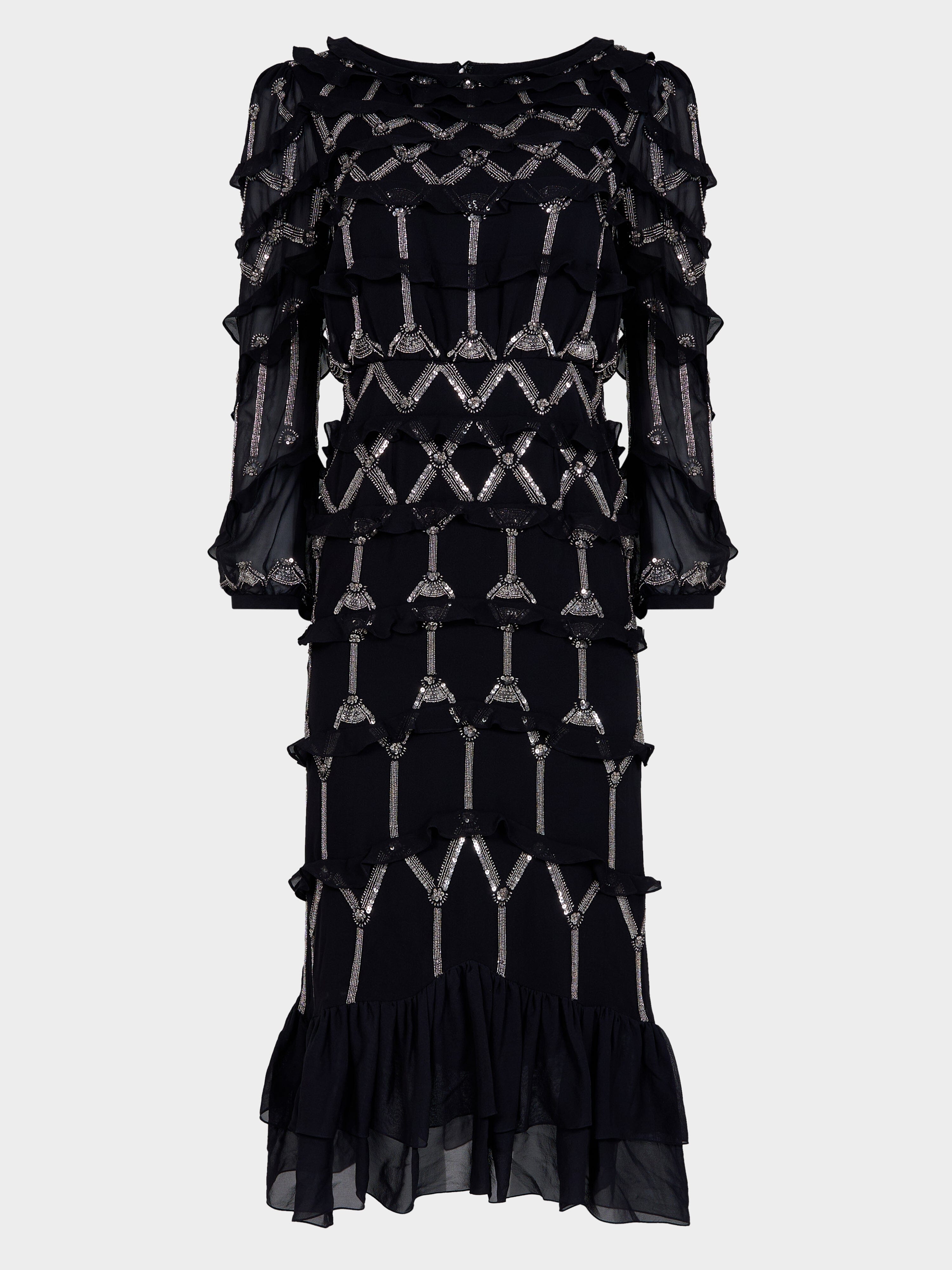 Isa D Dress, a must-have for this season. Crafted from delicate silk georgette, this dress features a wispy broderie adorned with shimmering mirrors for a...